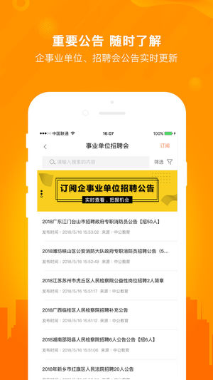 1、全新升級、改版,優(yōu)化體驗,內(nèi)容更豐富。2、新增訂閱功能,實時關(guān)注招聘會、企事業(yè)單位招聘信息。