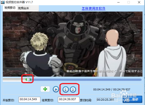 用軟件打開待截取視頻之后,我們有兩種方式進(jìn)行開始和結(jié)束時(shí)間的選擇。先說第一種,拖動(dòng)進(jìn)度條,在想截取的部分開始和結(jié)束部分點(diǎn)擊 "[" 或者 "]" 即可。
