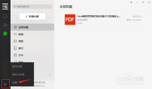 3、然后點擊設(shè)置按鈕,彈出設(shè)置頁面,此頁面包含微信電腦版的所有設(shè)置項。