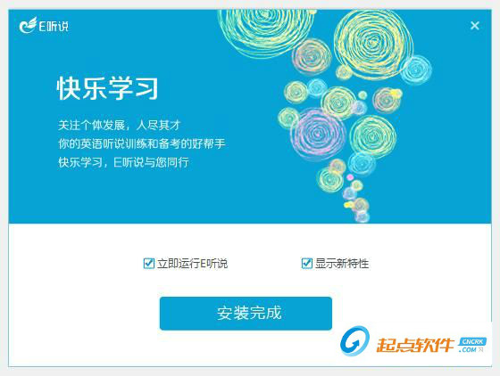 軟件安裝成功,這時(shí)候安裝向?qū)?huì)提示安裝成功。安裝向?qū)嫌袃蓚€(gè)勾選項(xiàng),立即運(yùn)行e聽說和顯示新特性。如果不想執(zhí)行,可以取消勾選。點(diǎn)擊安裝完成就可以完成軟件安裝,關(guān)閉安裝向?qū)А?br />