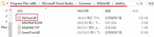 將編譯好的filetool.dll文件,放到VC++6.0根目錄\Common\MSDev98\AddIns文件夾內(nèi)。