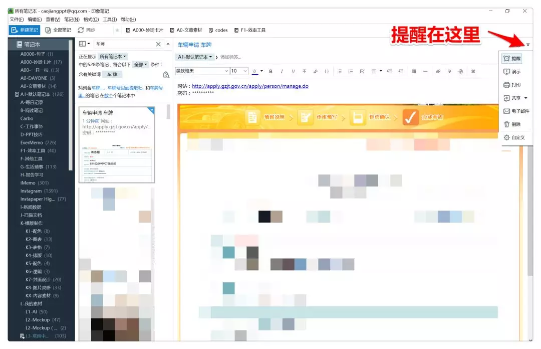 因?yàn)樾枰扛羧齻€(gè)月去系統(tǒng)上重新申請一次,所以我建了一個(gè)筆記,里面記錄了搖號(hào)的網(wǎng)站、賬號(hào)密碼信息,并設(shè)置好提醒時(shí)間。這樣每次到點(diǎn),接到提醒,然后順道點(diǎn)擊鏈接,輸入賬號(hào)密碼,重新發(fā)起申請。