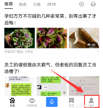3、在百度手機APP內(nèi),在導(dǎo)航中,找到“我的”(最右邊那個圖標(biāo))