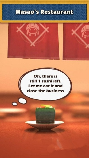 一個壽司的故事是一款好玩的模擬經(jīng)營手游,無人光顧的壽司店即將倒閉,壽司卻能自己銷售自己,告訴老板壽司的做法,吸引顧客,不僅拯救了壽司店,還讓老板成了億萬富翁!