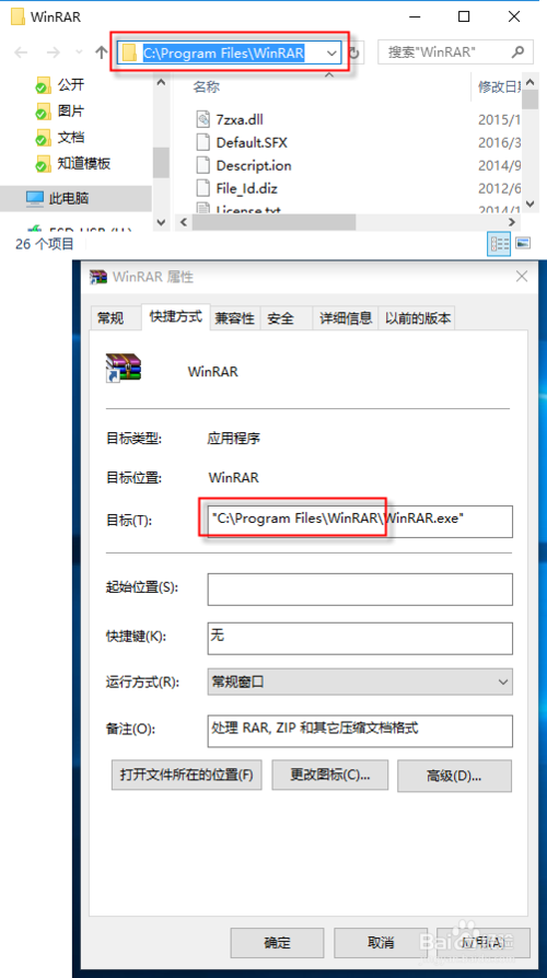 右擊桌面RAR圖標--屬性,可以看到安裝目錄。