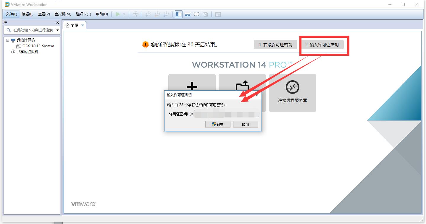 或者啟動VMware14,在‘界面’選項中輸入激活碼,進(jìn)行激活。