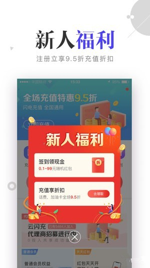 1、閃電充值話費(fèi)、加油卡,享受9.5折特惠福利。2、新人每日簽到隨機(jī)搶現(xiàn)金紅包,最高99元。