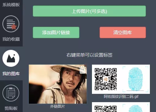 “我的圖庫”是收藏圖片的地方,可以通過上傳本地圖片獲取圖片,也可以通過添加圖片鏈接獲取圖片。