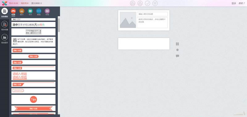 在秀米的編輯器中,有標題、圖片、卡片等等排版的模板,我們可以根據(jù)文章的內(nèi)容形式在選擇不同的模板類型