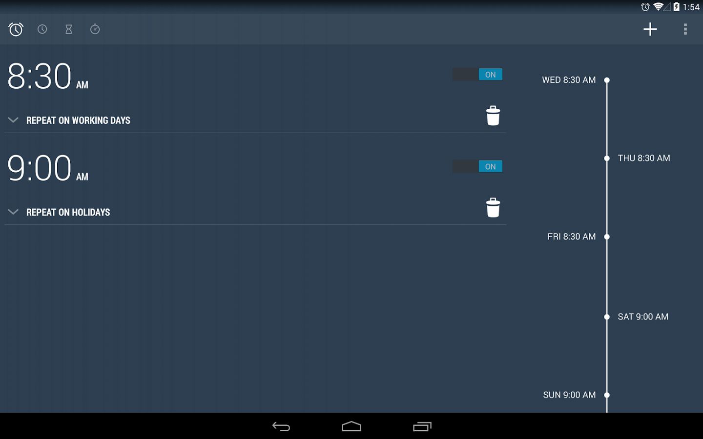 1、結(jié)合了數(shù)字時(shí)鐘、日歷、提醒/備忘時(shí)鐘、計(jì)時(shí)和程序調(diào)度的時(shí)間管理2、clockwise官方版可以安排5個(gè)提醒和多達(dá)30個(gè)單獨(dú)的程序事件