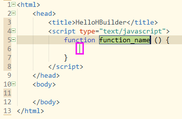 新建html基本模板后,當(dāng)前光標(biāo)處于title標(biāo)簽內(nèi),此時我們給HTML設(shè)置title:hellohbuilder,完成后使用Ctrl+回車在當(dāng)前的下一行插入空行,并將光標(biāo)移動到下一行