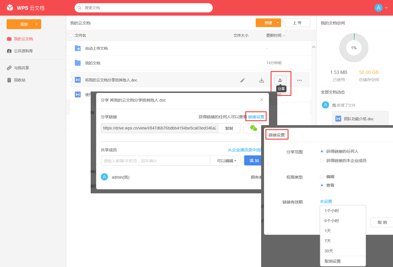 文檔不僅可以在企業(yè)內(nèi)團隊中分享,還可以分享給企業(yè)外的其他人。