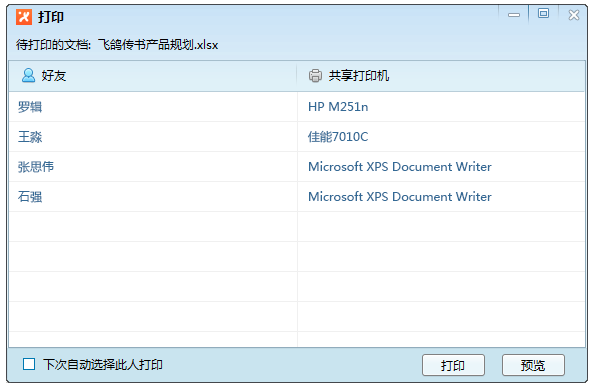 打開需要打印的文檔或圖片,選擇 打印 -> 飛鴿網(wǎng)絡(luò)打印機,選擇你要選擇的好友或打印機進行打印,也可以預(yù)覽需要打印的文件。