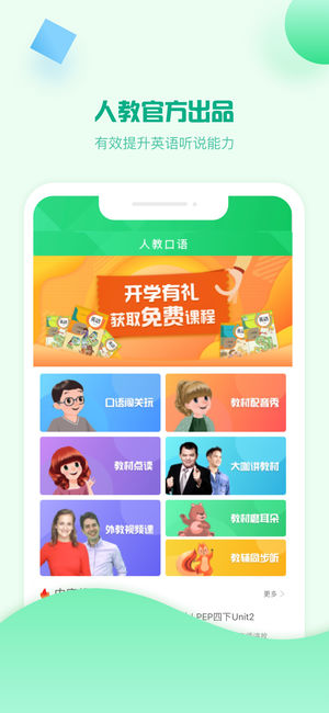 人教口語app融合中美教學(xué)專家精心原創(chuàng)的拓展內(nèi)容,集口語對話、智能評測、闖關(guān)游戲、方法交流于一體,
