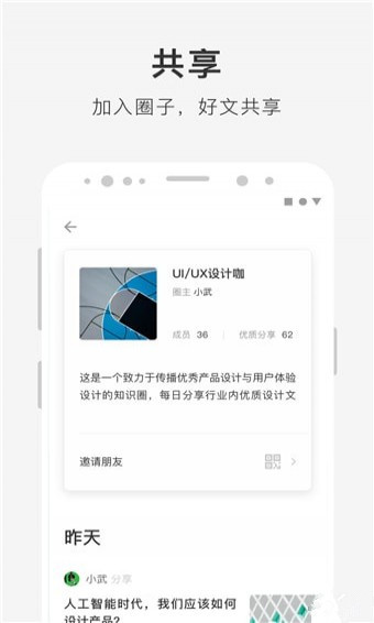 在圈子中,成員可以共享收藏的優(yōu)質文章