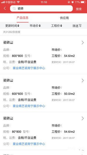 慧訊網(wǎng)app是一款領(lǐng)先的建材信息軟件,慧訊網(wǎng)在北京、上海、廣州、重慶、天津、杭州、南京、西安、武漢、成都等10個重點城市設(shè)有專業(yè)的信息搜集團(tuán)隊,其定期更新的信息數(shù)據(jù)庫覆蓋了建材及設(shè)備行業(yè)超過10萬家生產(chǎn)和銷售企業(yè),為政府部門、開發(fā)商、工程造價咨詢公司、設(shè)計公司、承建單位提供優(yōu)質(zhì)的產(chǎn)品價格信息服務(wù)。