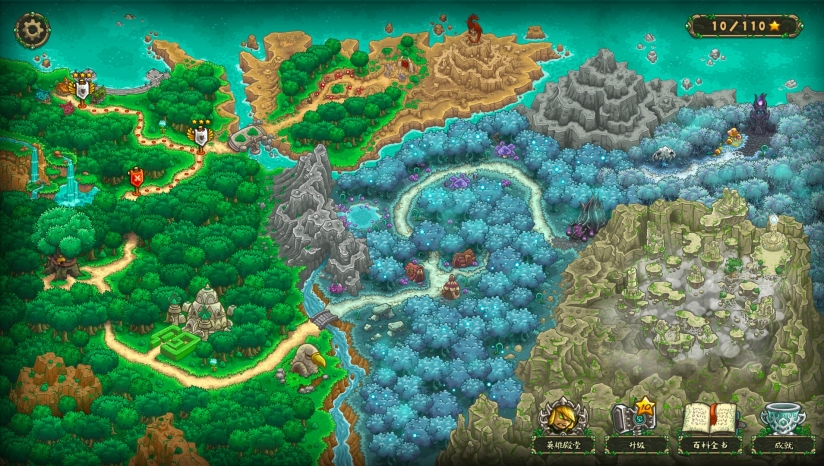 游戲體量有四片地圖區(qū)域,總75顆星25關(guān)的游戲內(nèi)容。與前作游戲相同的提供了弓箭塔,法師塔,兵營,投石塔四種防御設(shè)施,閃電雨與援軍兩個固定技能,搭配一個英雄技能使用??傮w玩法上并沒有特別大的改變,但根據(jù)初代整合后的升級路線與科技樹相比于二代顯得更加簡潔清晰,可以說上手速度有了快速的提升,基本兩盤左右就能摸清游戲路線。游戲提供了8位不同的英雄可供玩家選擇,每個英雄擁有完全不同方向種類的技能,可以幫你提供不同的戰(zhàn)術(shù)思路,豐富了游戲的玩法,與防御科技樹相同,每一位英雄的個人技能也是在完成一局的對局取得星星后可以進行升級,高等級技能的英雄在游戲中的表現(xiàn)力相當(dāng)驚人,有時甚至可以一個人打退一波敵人,可以看出這一作還是強調(diào)了對局中英雄的重要性,給玩家了一個在打不出三星或是卡關(guān)時一個良好的方案,就是優(yōu)先升級英雄能力,依托于強大的英雄贏得對局。