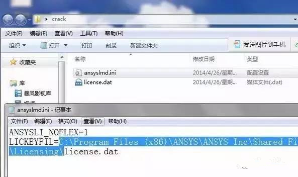 20、打開crack 文件夾下的ansyslmd.ini文件,將剛才復制的路徑在第二行對應位置粘貼,替換掉原來的位置。然后保存