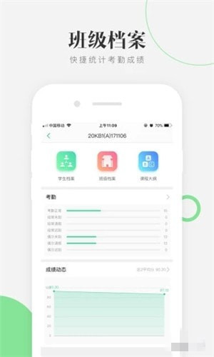 3、班級(jí):管理學(xué)生檔案、班級(jí)檔案、課程大綱,查看詳細(xì)的學(xué)生成績動(dòng)態(tài)、作業(yè)動(dòng)態(tài)、考勤動(dòng)態(tài);