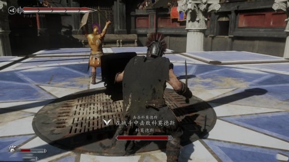 第一階段是跟科莫德斯單挑,這里我們只要在其強(qiáng)力攻擊的時(shí)候躲開,普通攻擊的時(shí)候格擋讓他露出破綻,然后追擊一套!