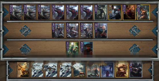 第三局就是把所有的卡牌打出去了,能贏則贏,贏不了就重來。這局需要注意的是使用天氣牌的順序,因為有晴天這個牌,所以要等對方先對你使用天氣牌,然后你用晴天解除之后再用你自己的。另外大家一開始基本上都是福泰斯特做領導,他的技能就是下霧這個天氣牌。