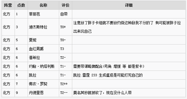 按照陣營排列先找到陣營再看戰(zhàn)斗力查找對應的卡。如果兩個卡之間難以抉擇,想想你想玩什么陣營\什么套路。