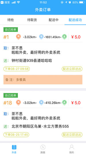 4.在訂單配送完成后,配送員會得到相應(yīng)的配送費(fèi),該配送費(fèi)自動打入配送員賬戶余額。