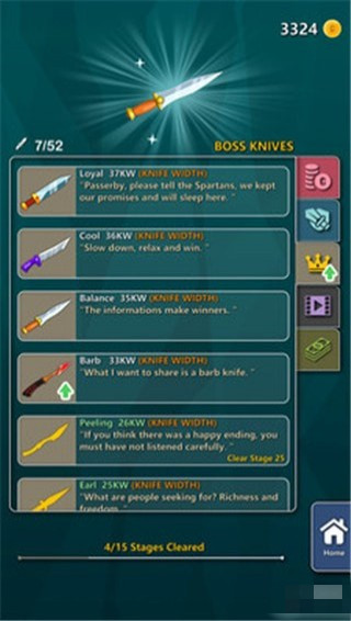 拍攝或扔刀以擊中原木并將其分解成碎片。用你的刀來打敗敵人。你砍的越多,你就可以得到越多的刀。每5個(gè)階段擊中老板,獲得有價(jià)值的刀具!