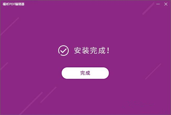 5、安裝完成!安裝程序已經(jīng)成功在您的電腦上安裝了Foxit PDF編輯器。安裝向?qū)嵝寻惭b完畢。點擊[完成]就可以退出安裝向?qū)?,同時運行Foxit PDF編輯器。我們就可以使用Foxit PDF編輯器編輯PDF文件了。