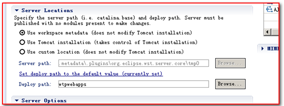 2.1、User workspance metadata (does not modify Tomcat installation) 將在eclipse的工作區(qū)間目錄下eclipse的工作空間目錄\.metadata\.plugins\org.eclipse.wst.server.core\tmp0\ 有一份tomcat的拷貝所有布暑的web工程都會(huì)布暑到eclipse的工作空間目錄\.metadata\.plugins\org.eclipse.wst.server.core\tmp0\wtpwebapps目錄中