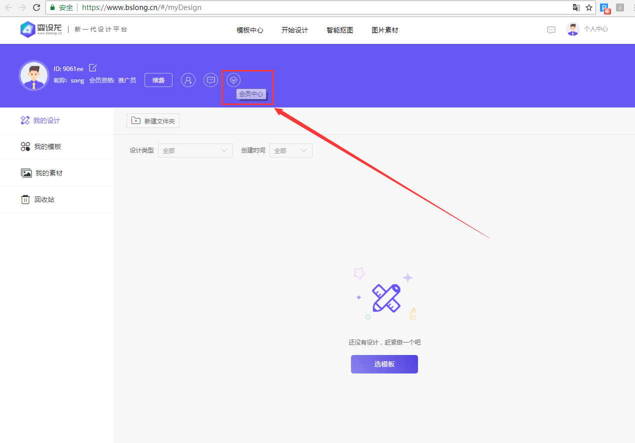 3、點擊賬號進入個人中心后點擊下圖中的會員中心。