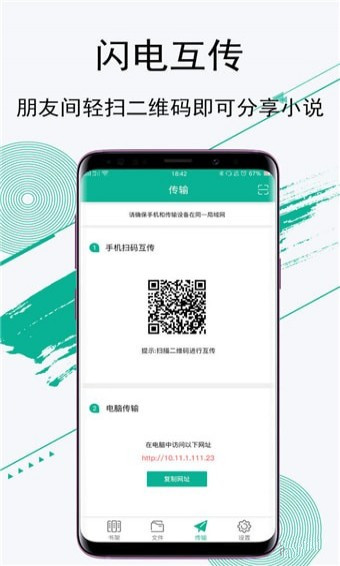 【文件互傳】支持手機(jī)與手機(jī)間的無(wú)線傳輸,朋友間掃描二維碼,即可輕松完成書籍、小說(shuō)、有聲讀物的分享。同時(shí),支持電腦與手機(jī)間的無(wú)線傳輸,打開電腦瀏覽器,選中目標(biāo)文件,點(diǎn)擊發(fā)送即可。