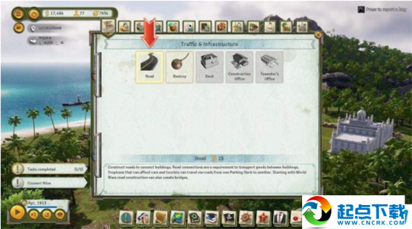 當(dāng)你修建了建筑,還需要繼續(xù)修建道路(road)將各個建筑聯(lián)系起來。