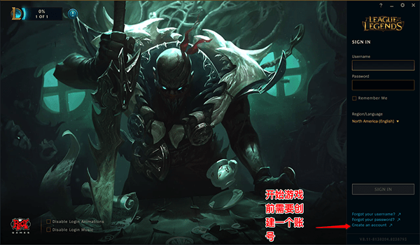 5、沒(méi)有賬號(hào)的玩家,如上圖所示,點(diǎn)擊“創(chuàng)建賬號(hào)”,這時(shí)候會(huì)跳轉(zhuǎn)到拳頭公司的LOL賬號(hào)注冊(cè)頁(yè)面,注冊(cè)賬號(hào),在登陸游戲即可。