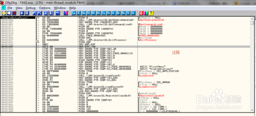 第四列是強(qiáng)大的ollydbg為我們提供的注釋功能,能看到一些windows api,或者是一些可讀的信息。當(dāng)然你也可以自己寫(xiě)注釋。