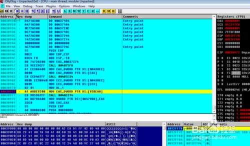 如下如所示,建議最好有一些8086的匯編基礎(chǔ),ollydbg支持動(dòng)態(tài)反匯編,所以您可以修改一些程序指令。