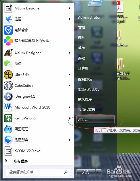 現(xiàn)在來到電腦桌面,點(diǎn)擊“開始”、“運(yùn)行”打開運(yùn)行對(duì)話框