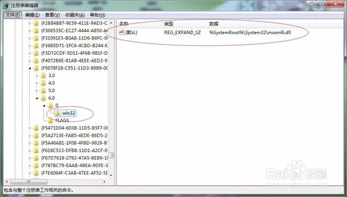 4、雙擊 (默認(rèn)值) 在下的值 win32然后再更改它的值從%SystemRoot%System32msxml6.dll到C:WindowsSystem32msxml6.dll。