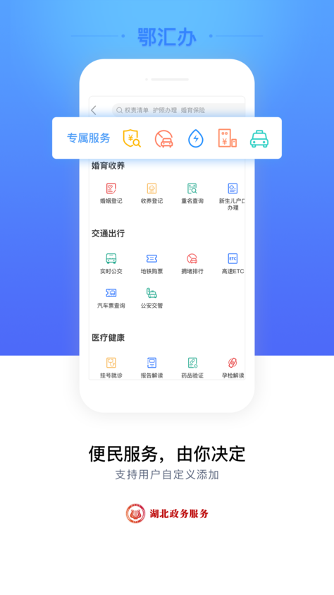 鄂匯辦app定位為湖北群眾和企業(yè)辦事的首選窗口,與湖北政務(wù)服務(wù)網(wǎng)共同構(gòu)成一體化的“互聯(lián)網(wǎng)+政務(wù)服務(wù)”平臺(tái)。