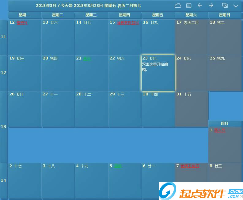 極速小編還這一次就給大家演示一下怎么使用桌面日歷添加編輯備忘事項(xiàng)。按照桌面日歷的提示,雙擊日期開始編輯。雙擊今天的日期;