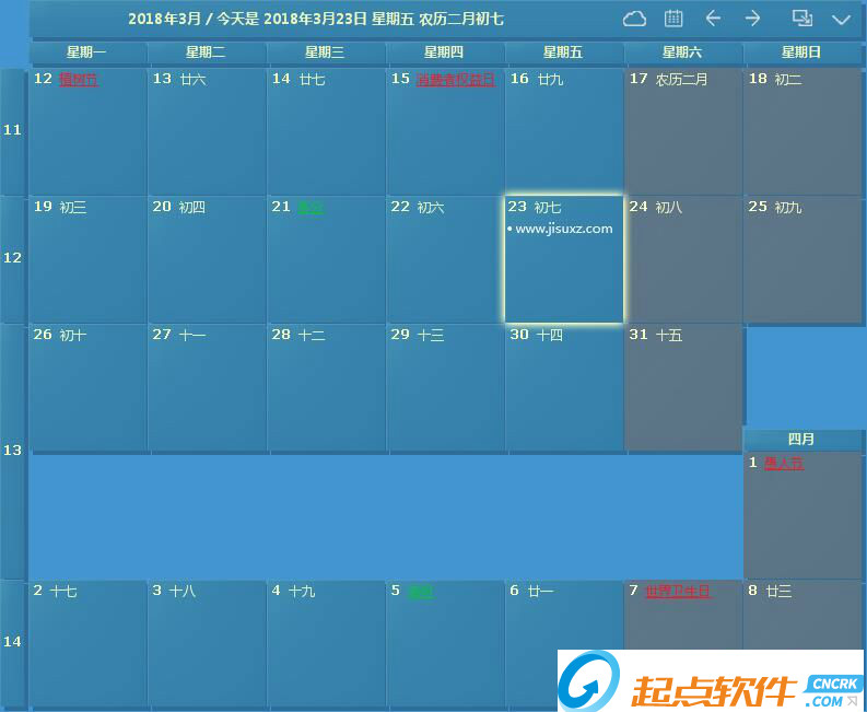 任意一天都可以設(shè)置您想要的背景顏色。所以,每天都是彩色的。