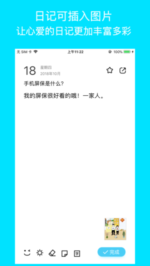 ● 寫上幾行文字,選擇當天心情和天氣,簡單完成日記,使用五年日記本app不用再為寫什么而煩惱;