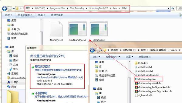6、將破解的rlm.foundry.exe復(fù)制到原始文件上替換(C:\ Program Files \ The Foundry \ LicensingTools7.1 \ bin \ RLM \ rlm.foundry.exe)