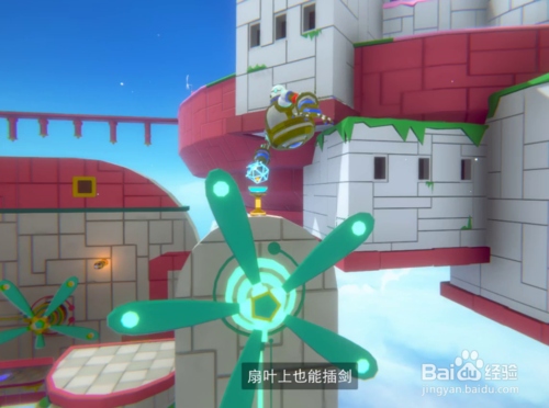 然后用弓箭瞄準(zhǔn)激活曝氣即可,我第一次在每個(gè)扇葉上都放置了一把劍,所以我射的是下面的一把,最后想想好像只要一把就可以了