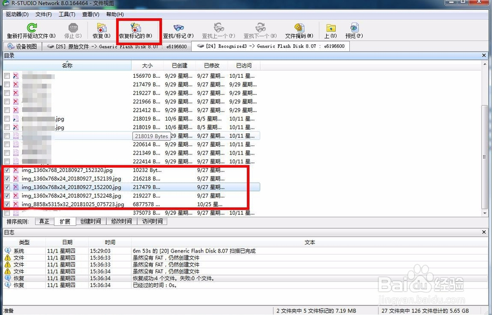 接著在要恢復(fù)的圖片選項前面的方框內(nèi)打勾,然后選擇上方的恢復(fù)標(biāo)記的選項,如圖所示: