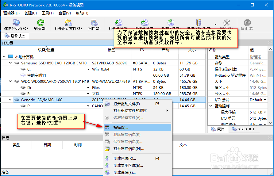 找到需要恢復(fù)的驅(qū)動器,右鍵掃描