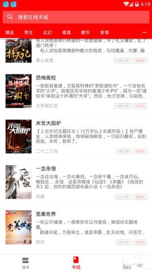 3、海量書庫:書城圖書繁多,種類齊全,包括玄幻、武俠、言情、都市、穿越、宮斗、歷史、軍事、熱門、網(wǎng)絡(luò)、經(jīng)典小說。