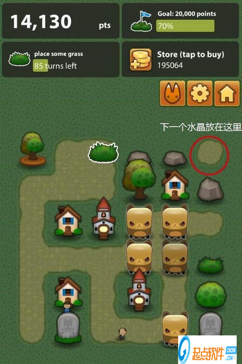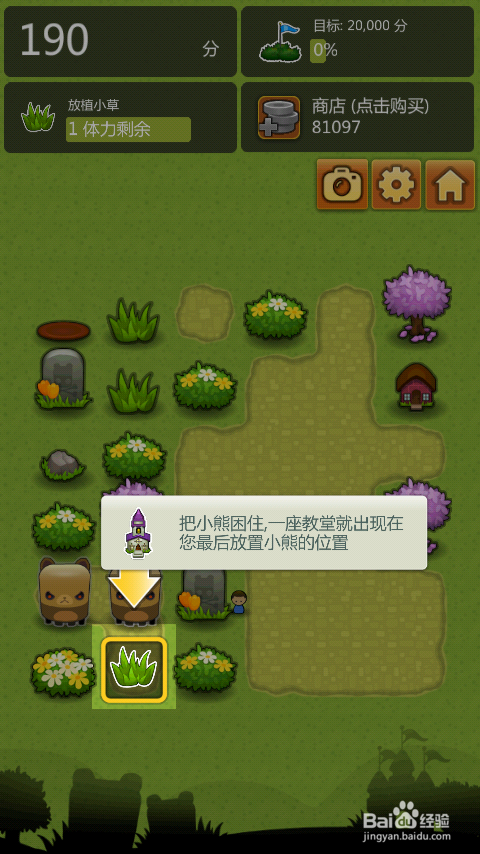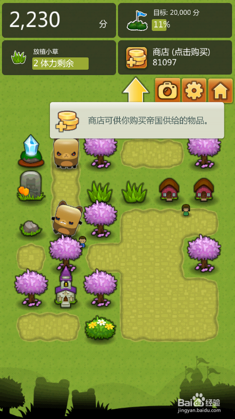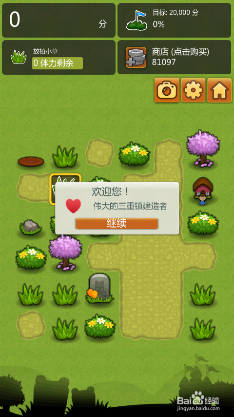 一、三重小鎮(zhèn)高分秘籍1.打開(kāi)游戲,綠色的游戲界面映入眼簾,可愛(ài)的小熊,小草,大樹(shù)等待您的種植。好啦,初始頁(yè)面的局勢(shì)已經(jīng)設(shè)置好,下面就是發(fā)揮自己智慧的時(shí)候啦。