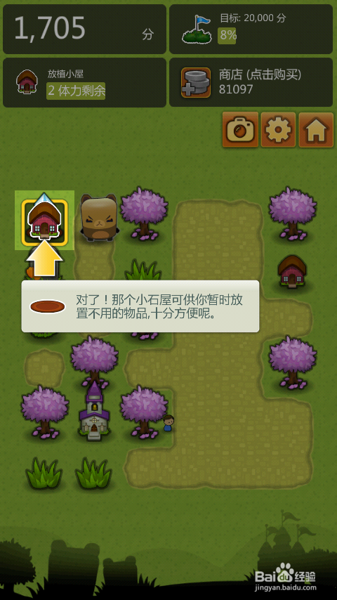左上角有一個(gè)小石屋,可以存放一個(gè)物品