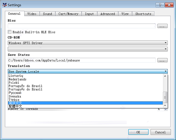 2、進入設置中文的窗口,選擇Translation選項的簡體中文,然后點擊右下方的OK